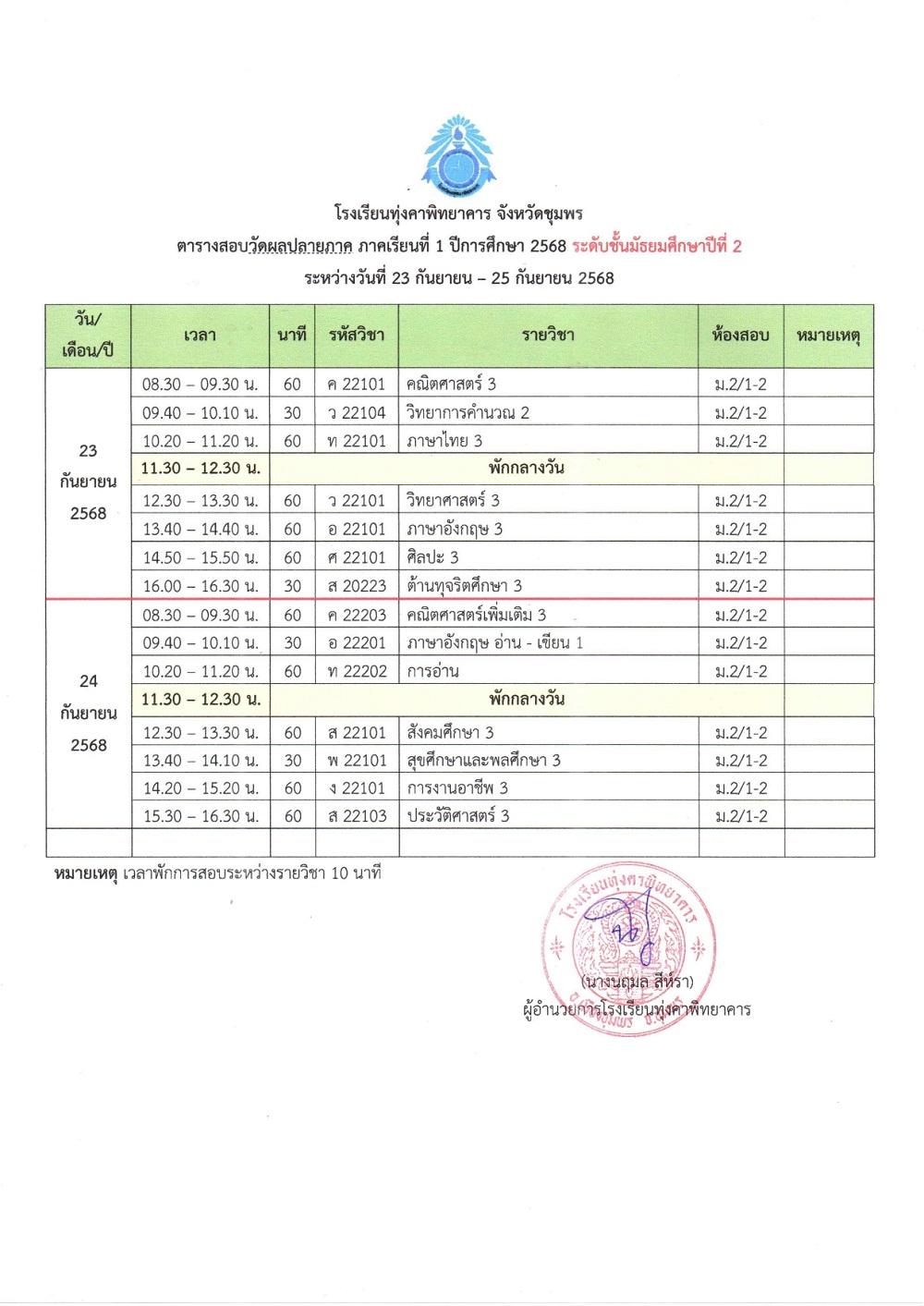 ตารางสอบวัดผลปลายภาคเรียน ภาคเรียนที่ 1 ปีการศึกษา 2568 ม.2